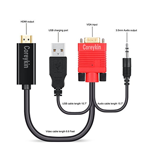 Coreykin 1080p VGA a HDMI convertitore adattatore cavo maschio a maschio con uscita audio & USB da desktop/laptop/notebook/computer/pc/HD tv-box videogioco a HDTV/monitor/proiettore retail package