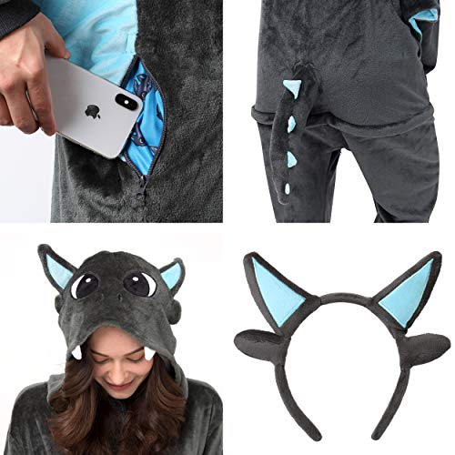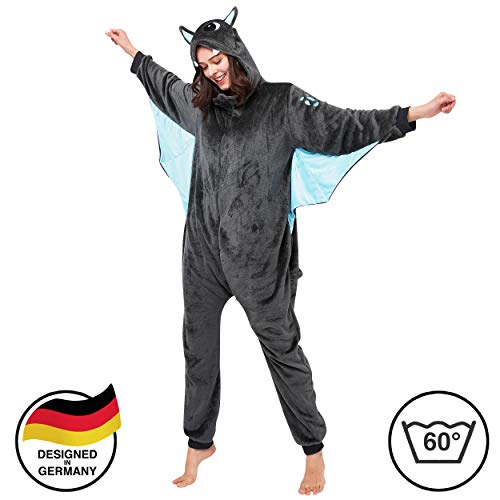 Corimori 1852 (6+ designs) Costume Uomo Donna Tuta Kigurumi Animale Pigiama Intero Adulti, "Spark" il drago (Nero), Altezza 170-180 cm