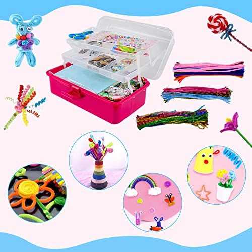 Coriver Lavoretti Creativi per Bambini, 1400+ Pezzi DIY Art Craft Set con Scatola Immagazzinaggio, Creativo Giochi Fai da Te con Scovolini Pompon, Scrapbooking Stickers per Bambini da 4 a 12 Ann