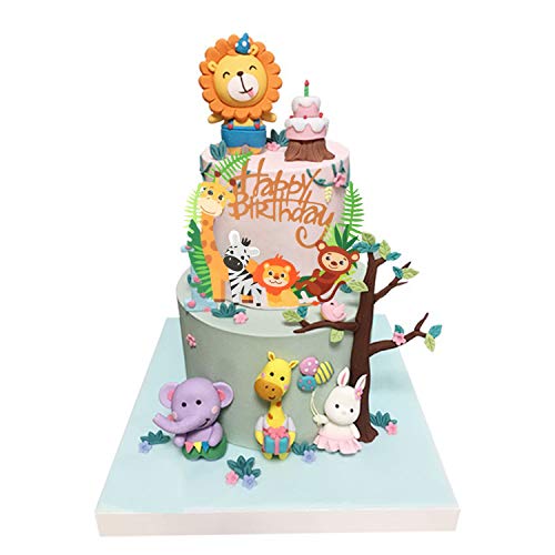 Coriver 50 Pezzi Simpatico Topper per Animali a Tema Zoo / Giungla, 1 Pezzo Banner di Buon Compleanno e 49 Pezzi Decorazioni per Torte per Cupcake Animali per Bambini Baby Shower Party