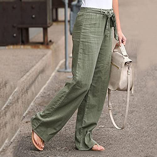 Corlidea Pantaloni lunghi da donna, casual, in lino, estivi, leggeri, estivi, a gamba larga, per il tempo libero, con tasche Verde militare XXXXL