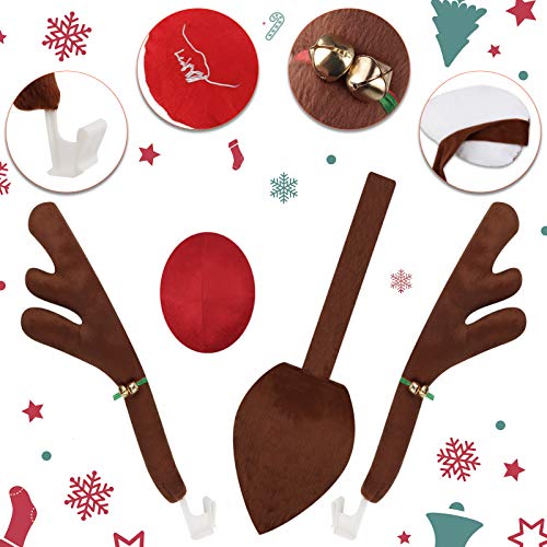 Qhui Corna Renna per Auto, Renne Addobbi di Natalizi Auto di Corna e Naso Rosso con Campanule e Coda, Decorazione di Natale per Auto Set di Accessori Natalizia