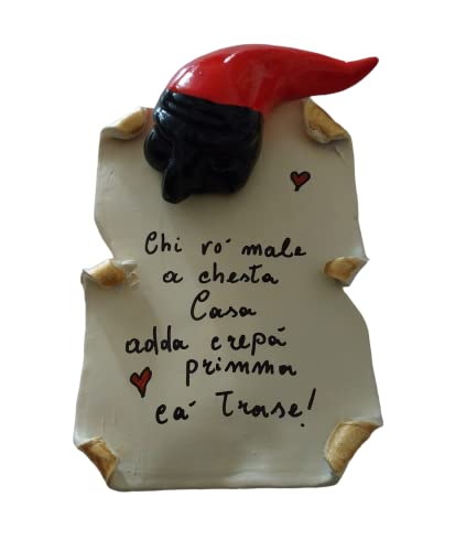Cornetto corno portafortuna con pergamena e frase IN CERAMICA (ceramica 2)