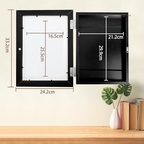 Cornice con Apertura Frontale, Cornice per esposizione di opere d'arte Per Bambini Contiene Fino a 150 Opere d'arte, Cornici da Parete Incernierate per Arte, Artigianato o Disegno per Bambini, Nero