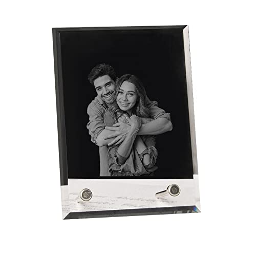 Cornice per foto di coppia in cristallo con foto personalizzata, incisa con la tua foto, regali di compleanno personalizzati per le donne (Verticale)