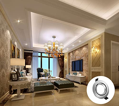 Cornice Faretto Incasso Cartongesso GU10,Portafaretto da Incasso Rotondo Argento,Faretti led da incasso per cartongesso incl.Portalampada GU10,Orientabili a 30°,Per 50mm LED e Alogeno,Set da 60