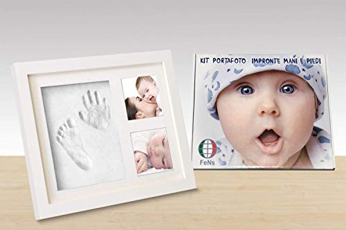 Cornice Impronte Neonato FeNs Calchi In Argilla 3D Per Neonati. Portafoto Per Festeggiare Il Neonato. Cornice In Legno Da Parete E Da Tavolo Colore Bianco
