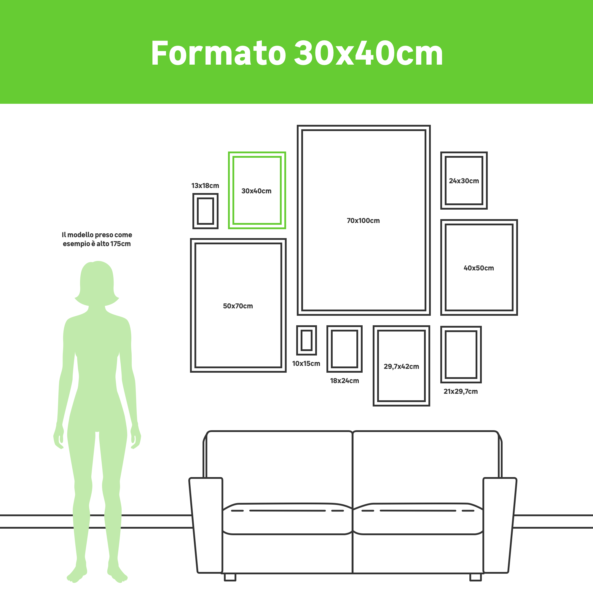 Cornice in legno, disponibile in diverse misure. Si può appendere o appoggiare orizzontalmente o verticalmente, per adattarsi allo spazio che hai a disposizione. La disponibilità di diverse misure permette di coordinare tra loro le diverse immagini da incorniciare. Il legno garantisce robustezza e durata massima. Realizzata in Italia. Grazie alla protezione frontale in vetro, le tue immagini saranno valorizzate