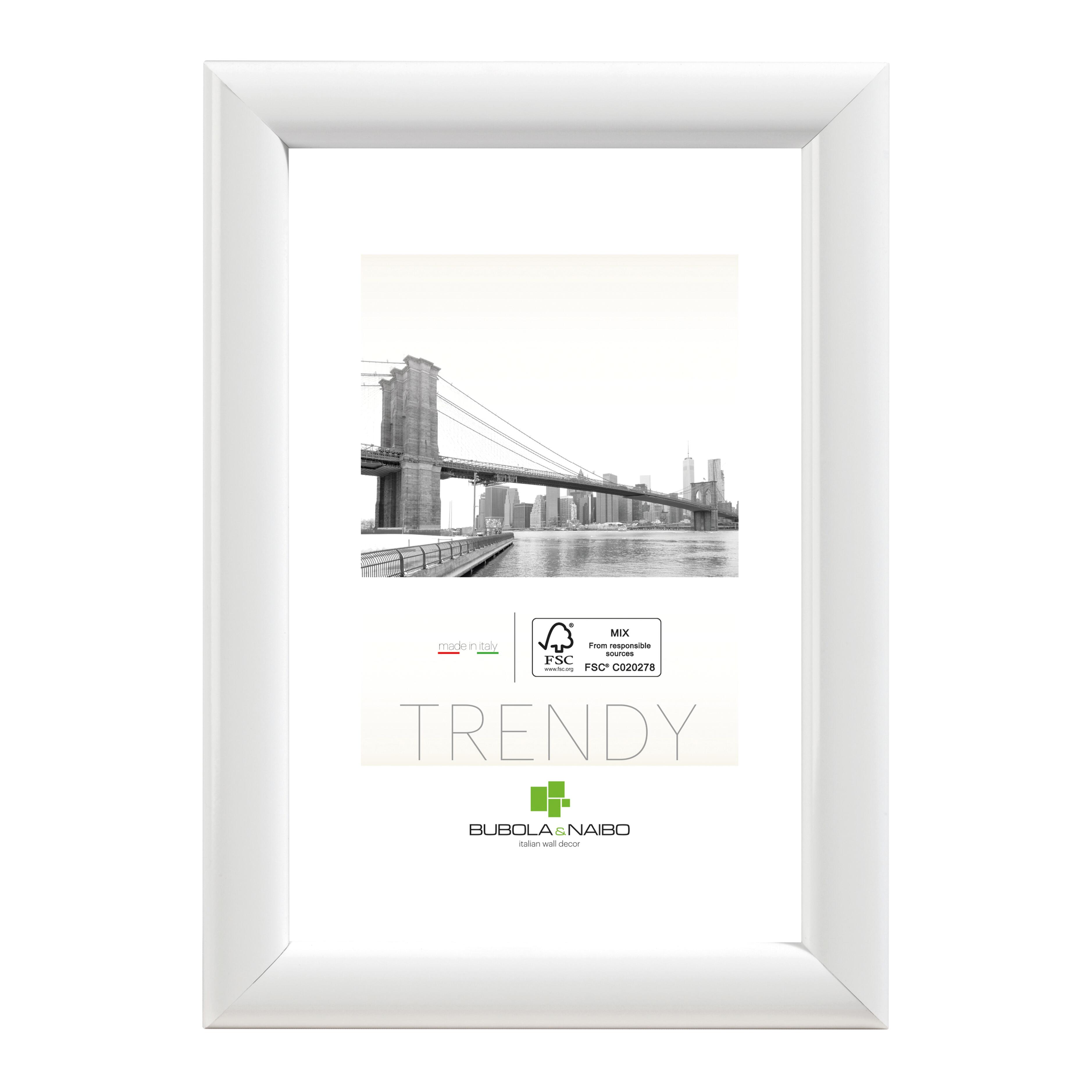 Cornice da tavolo o da appendere in legno con vetro molato a protezione della foto inserita.