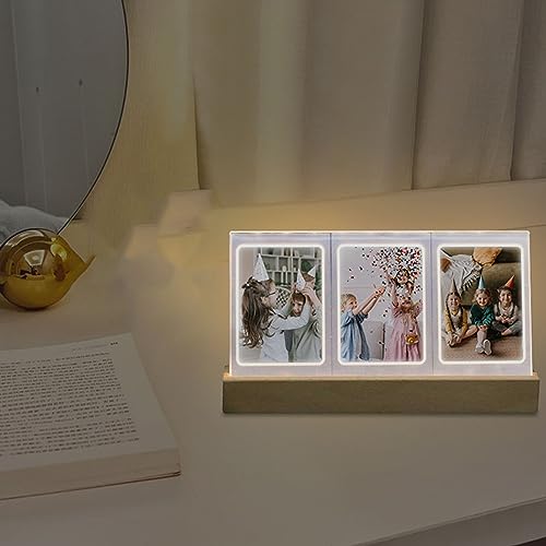 PRECISO E DUREVOLE: Realizzato in acrilico trasparente, questo Light Up Picture Frame non è solo durevole e resistente agli urti, ma mostra anche le tue foto con chiarezza. I bordi lucidi offrono un display sicuro ed elegante, mentre la robusta base in legno offre stabilità senza la necessità di ulteriore supporto.
