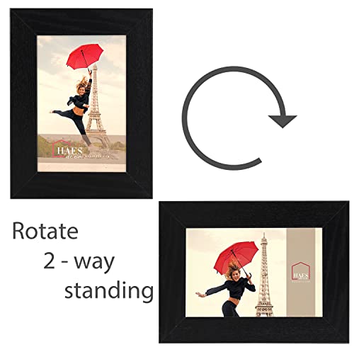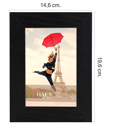 HAES DECO - Cornice Legno 10x15 Paris Nero - Cornice per Foto in Legno - Cornici per Ritratto con supporto e Cornici da Parete - Portafoto per 1 Foto in Formato 10x15 - SP001101