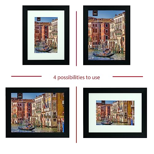 HAES DECO - Cornice Legno 15x20 - Cornice per Foto in Legno con passepartout Venezia Nero - Cornici per Ritratto con Supporto e Cornici da Parete - Portafoto per 1 Foto 10x15 o 15x20 -SP12920