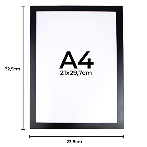 Cornice magnetica semplice per documenti A4, con bordo adesivo, confezione da 2 (nero)