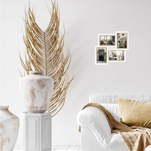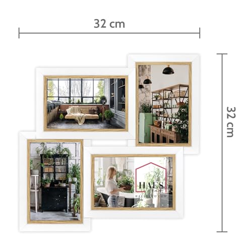 HAES DECO - Cornice multifoto in legno/Galerie Fevik in bianco con marrone per 4 foto 10x15 (dimensione 32x32 cm) - CV442HS