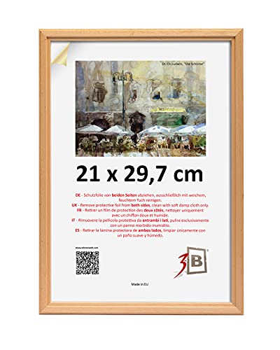 3-B Cornice per foto JENA - natura - 21x29,7 cm (A4) cornice in legno esotico con vetro acrilico