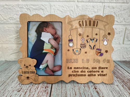 Cornice Personalizzata Nascita Neonati, Idea Regalo Bambini, Portafoto In Legno, Regali Bimbo o Bimba, Cornici Foto (Rovere)