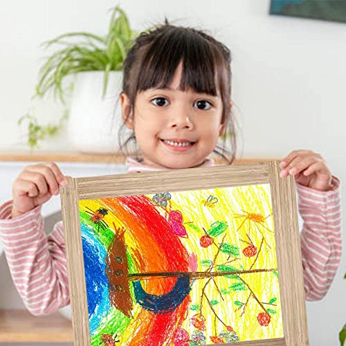 Cornice Porta Disegni Bambini,Porta Disegni Bambini Da Appendere,Cornici Per Disegni Bambini,Cornice a cerniera riempibile con apertura frontale, progetto artistico, colore legno, 2 pezzi, 35*26*5cm