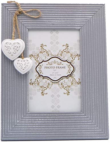 G.B. Cornice Porta Foto in Legno Invecchiato ad Arte con pendagli a Forma di Cuore in Legno (18 x 23 cm)