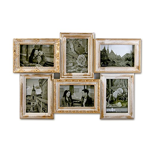 541, Cornice portafoto 3 D, per collage con 6 foto, galleria fotografica, telaio bianco, anticato, oro