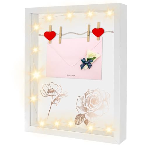 【Cornice Portafoto 3D】La confezione include 1 pz di Cornice Contenitore 3D, dimensioni: 27*22*4,5 cm, profondità interna di 3 cm, 1 pz di cavo di luce bianca calda da 1 m, 10 pz di clip in legno dell'amore, 10 pz di clip in legno originali, 1 pz di spago e 1 pz di rotolo di colla a punti, perfetto per progetti di artigianato e fai da te.