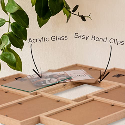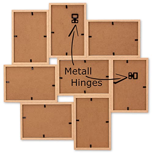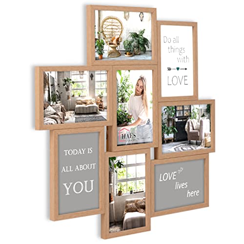 HAES DECO - Cornice portafoto portafoto a forma di Stoccolma in legno marrone moderna, cornice portafoto multipla per 8 foto 10 x 15 collage fotografico (formato 44 x 44 cm) - MP151