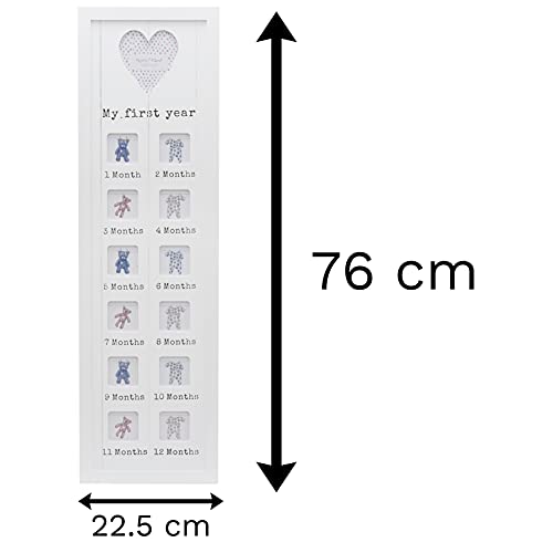 Cornice portafoto per i primi 12 mesi del bambino, con scritta in inglese “My first year”, dimensioni: 76 cm x 22 cm, Legno, White, 8.6 l x 30 h inches