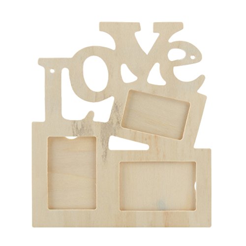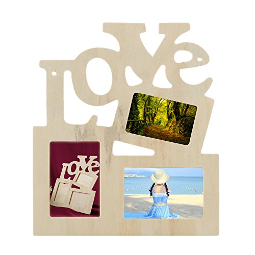 Cornice portafoto 3 in 1 con scritta in inglese "Love Wood", in legno, per foto fai da te, decorazione artistica e collage