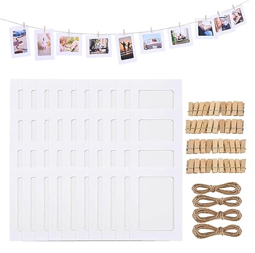 【Pacchetto di grande valore】Cornice per foto in carta da 40 pezzi, 40 mini clip di legno, 4 corde di spago. Abbastanza per appendere molte foto. Abbastanza per appendere le tue foto, puoi combinare e decorare liberamente.