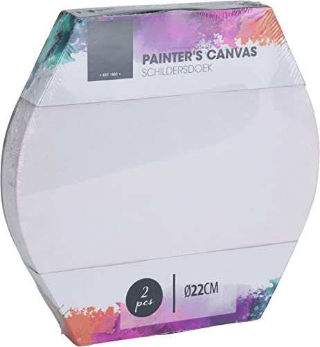 Set di 2 cornici con tela da dipingere, in 100% cotone, 280 g/m², per colori ad olio e acrilico, pannelli di tela vuoti bianchi (Ø 22 cm)