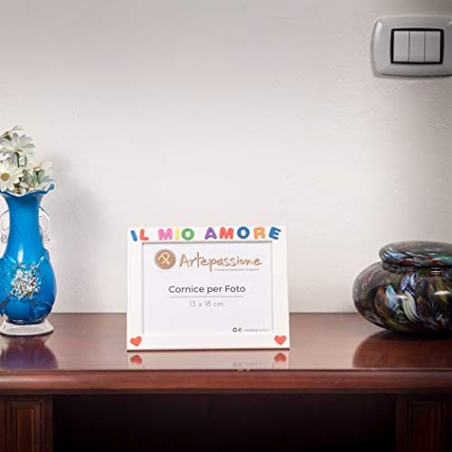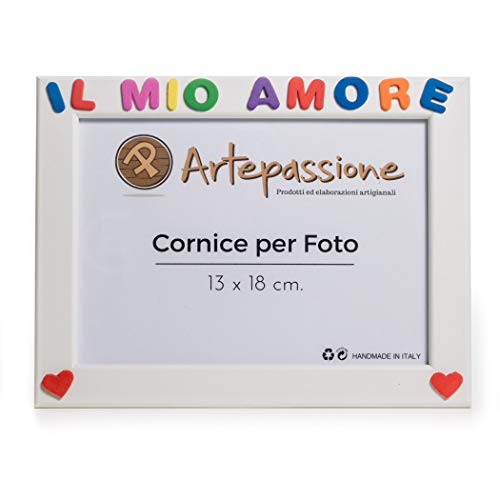 Cornici per foto in legno con la scritta Il Mio Amore e decorate con cuoricini, da appoggiare o appendere, misura 13x18 cm Bianca. Ideale per regalo e ricordo alla persona amata.