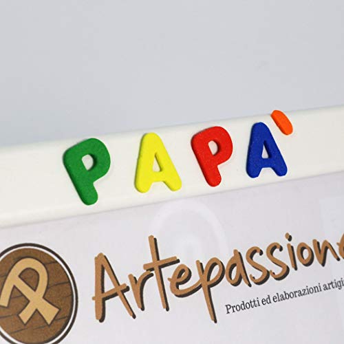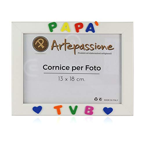 Cornici per foto in legno con la scritta Papà TVB e decorata con cuoricini, da appoggiare o appendere, misura 13x18 cm Bianca. Ideale per regalo e ricordo.