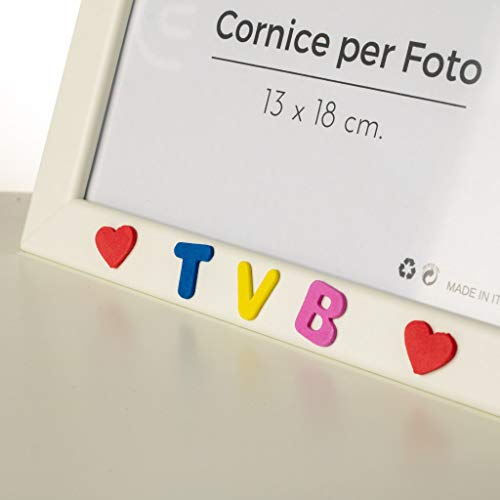 Cornici per foto in legno con la scritta Super Zia TVB e decorata con cuoricini, da appoggiare o appendere, misura 13x18 cm Bianca. Ideale per regalo e ricordo.