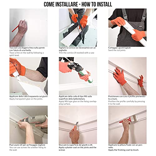 CONTENUTO: 10 pezzi di cornice da 1 metro. Modello: KH905 Totale lunghezza: 10 metri. Le cornici sono modulari quindi per coprire lunghezze maggiori (per esempio una stanza intera), acquistare il numero di kit necessari.