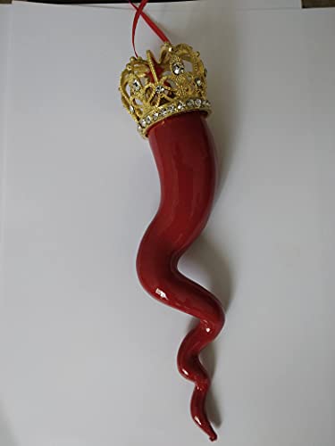 Corno cornetto portafortuna in terracotta gigante con corona in metallo (rosso con corona oro)