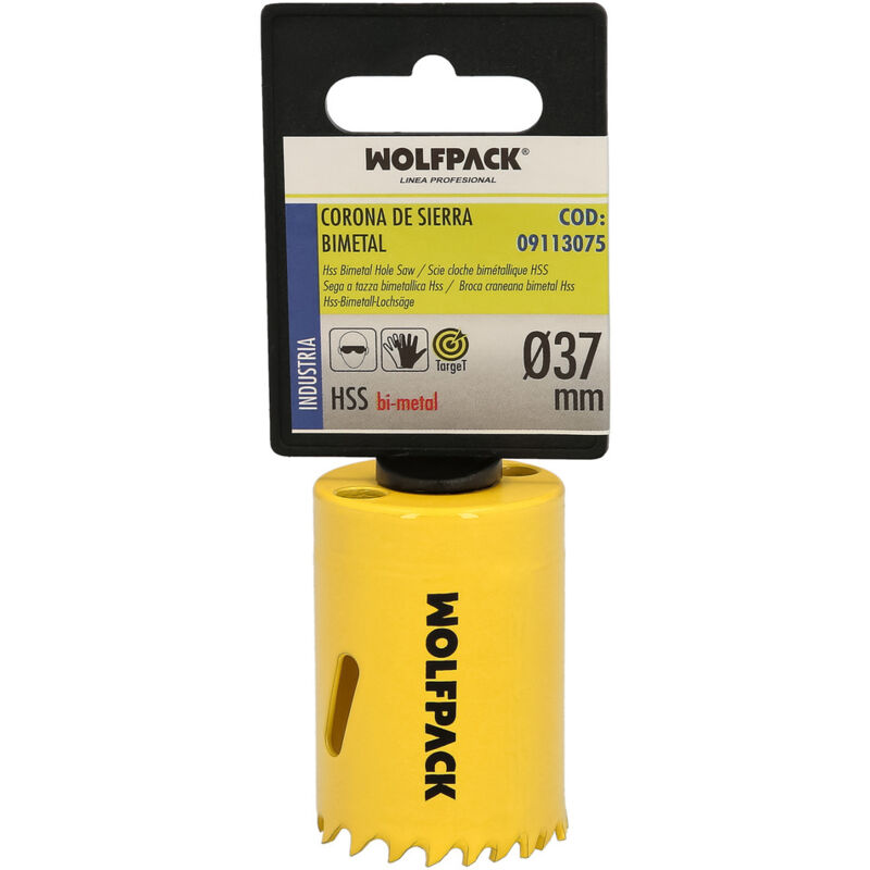 Corona bimetallica Target Saw - Dimensioni: Ø 37 mm. - Realizzata in una lega altamente dura e resistente all'usura. - Denti temprati termicamente, che gli conferiscono un'elevata stabilità ai taglienti. - Base della corona rinforzata. - Fori laterali per l'evacuazione del truciolo e un migliore raffreddamento. - Ideale per realizzare fori su acciaio dolce, ghisa, ottone, alluminio e legno. - Articolo noto come trapano per legno, trapano per legno, sega per legno, sega per legno.