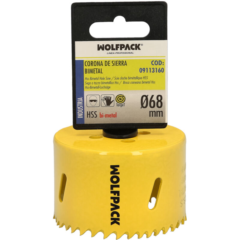 Corona bimetallica Target Saw - Misura: Ø 68 mm. - Realizzata in una lega altamente dura e resistente all'usura. - Denti temprati termicamente, che gli conferiscono un'elevata stabilità ai taglienti. - Base della corona rinforzata. - Fori laterali per l'evacuazione del truciolo e un migliore raffreddamento. - Ideale per realizzare fori su acciaio dolce, ghisa, ottone, alluminio e legno. - Articolo noto come trapano per legno, trapano per legno, sega per legno, sega per legno.