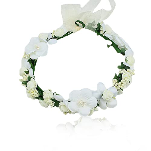 Corona per Capelli da Sposa, Fascia perCorona di Fiori da Polso Floreale, Ragazza da Donna per Festival, Feste, Matrimoni, Spiaggia (Beige)