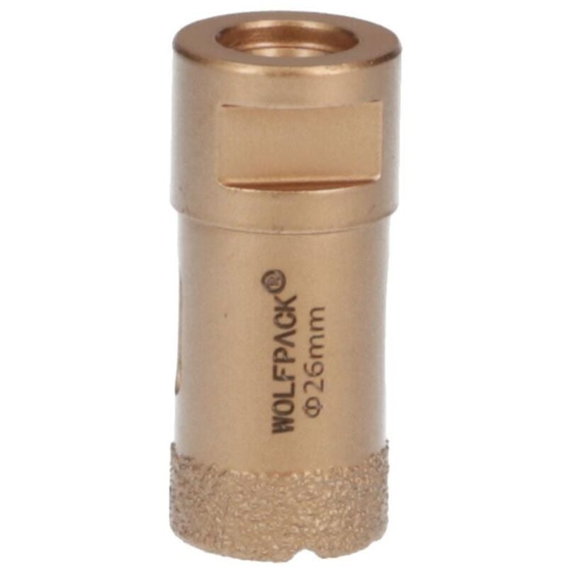 Corona diamantata - Dimensioni: Ø 26 mm. - Altezza diamante: 10 mm. - Filettatura: M14 - La corona diamantata consente una foratura più rapida e sicura, riducendo al minimo la rottura. - Ideale per piastrelle, ceramica, pietra naturale, marmo, granito, porcellana. - Articolo noto come corona per piastrelle, corona per piastrelle, corona per smerigliatrice, corona in marmo, corona in granito, corona in pietra.