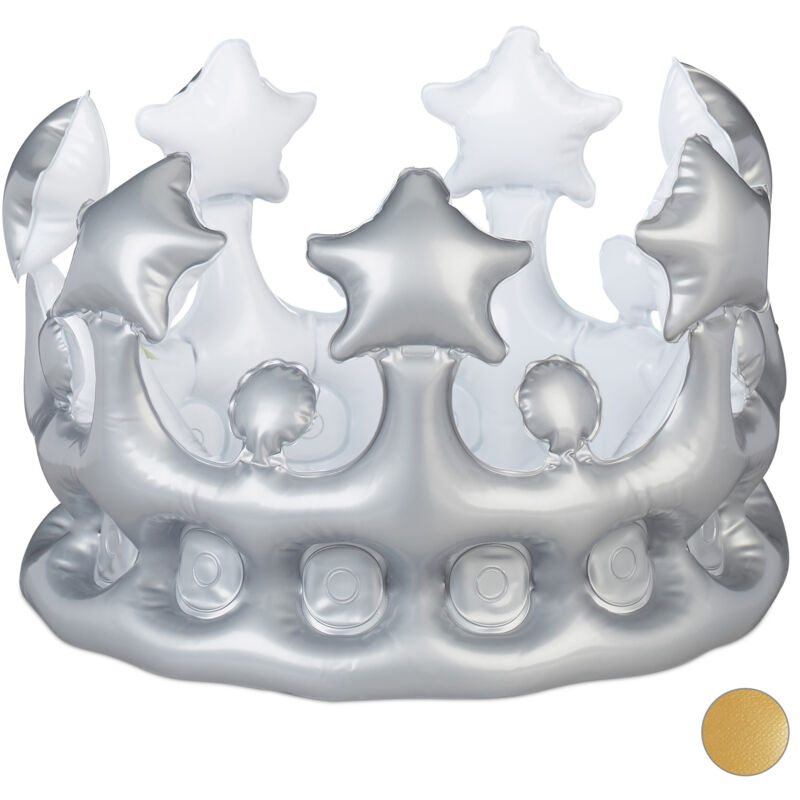 Spesso essere il capo non è sufficiente e alle volte fa bene lasciarsi incoronare come un vero re o regina. In questi momenti salta fuori la corona gonfiabile. Bastano pochi secondi per gonfiarla ed assumere un aspetto regale. Ora potrete finalmente prendere il comando e guidare il vostro popolo verso il divertimento. Che sia un party di carnevale, una festa a tema, un addio al nubilato o celibato, i sudditi non potranno che ringraziare vostra maestà. Corona gonfiabile in dettaglio - Misure corona HxD: 16 x 21 cm ca. - Circonferenza: 60 cm ca. - Peso: 45 g ca. - Materiali: PVC BPA-free - Colore: argento - In set da 10 Corona gonfiabile per momenti regali - Accessorio per costume da re, regina, principe o principessa - Ideale per carnevale, feste a tema e addii al nubilato/celibato - Pratica taglia unica per adulti e bambini - Leggera e piacevole da indossare Avvertenze di sicurezza: non adatto ai bambini di età inferiore ai 3 anni Contenuto della confezione - 10x corona gonfiabile