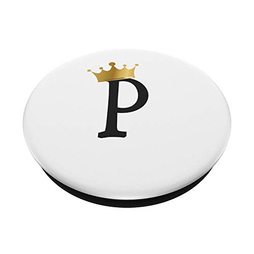Corona d'oro, Lettera P Monogramma Iniziale, Bianco, Minimo PopSockets Supporto e Impugnatura per Smartphone e Tablet