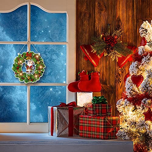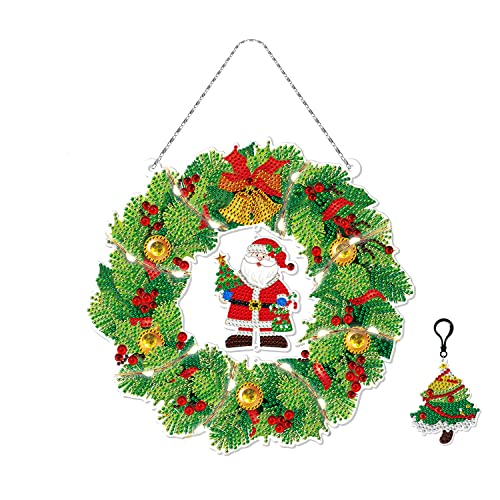 Kit di corone per pittura a diamante 5D con stringa di luci a LED, trapano a punti di cristallo 5D ghirlanda di Natale pittura con diamanti di Natale decorazione ghirlanda appesa decorazione
