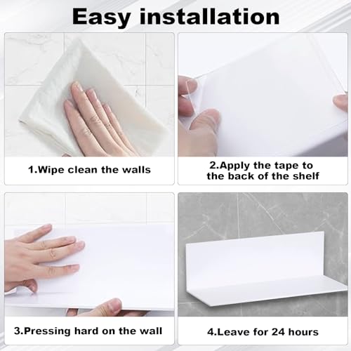 【Facile da installare】Le nostre mensole da parete galleggianti sono facili da installare, Questo nastro per mensole da parete è un'installazione resistente e impermeabile, facile e affidabile senza praticare fori nel muro, basta pulire la parete e lasciarla per 24 ore e sarà pronta per l'uso.