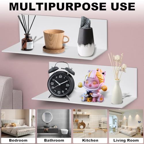 Corpower Mensole da Muro Bianche in Acrilico 4 Pezzi, Mensola da parete bianca senza foratura, Parete Galleggiante Supporto Espositori per bagno, soggiorno, camera da letto, cucina, ufficio