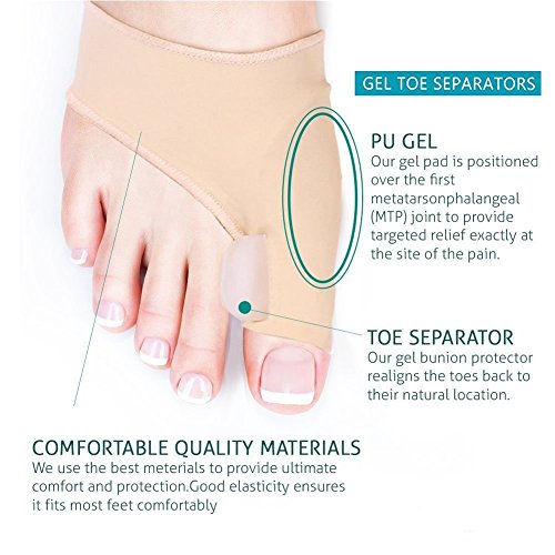 Supporto per alluce completo - oxyland bunion Sleeve ha un profilo in gel super soft pad (Orthotic Pad) Posizionato esattamente sopra il giunto 1st metatarsophalangeal (MTP), riducendo così le dimensioni e le del dolore per buona alluce valgo.