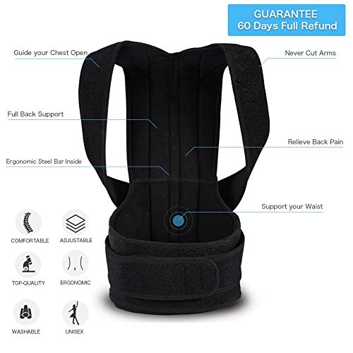 DESIGN COMPLETO DI SCHIENA ED ERGONOMIA: il correttore di postura supporta schiena, spalle e vita. Le cinghie tirano indietro le spalle mentre la nostra cintura sostiene la parte centrale e la parte bassa della schiena. Contribuire a ridurre il carico sulla colonna vertebrale e sui muscoli