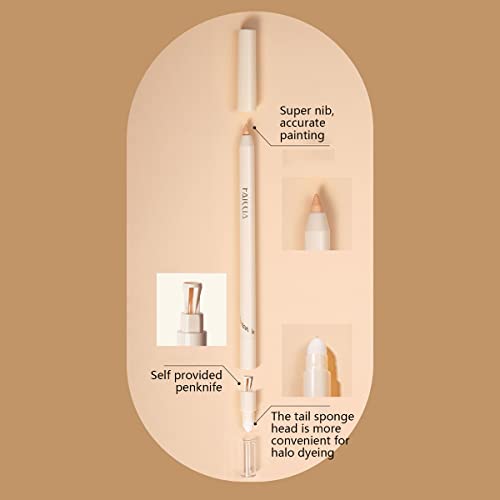【Dettagli】La punta fine del correttore può applicare con precisione solchi lacrimali e pieghe nasolabiali. La coda è dotata di un temperamatite e di una testina in spugna, più comoda per le sbavature.