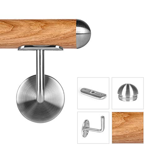 Corrimano in rovere tedesco da 170 cm, 2 supporti e tappo: a mezza sfera.