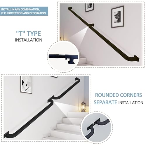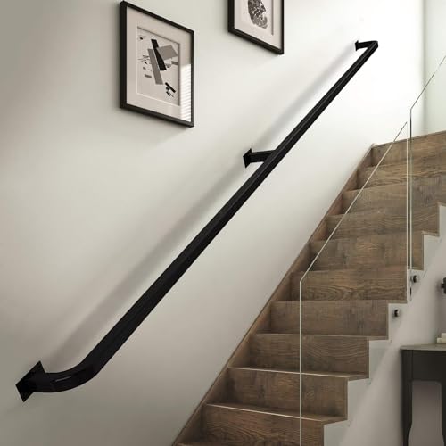✓【Set completo】: corrimano per ringhiera montato a parete, design resistente, include parti del binario, staffe a parete, viti di montaggio;