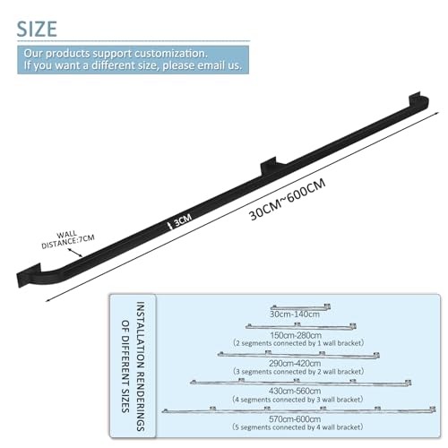 ✓【Dimensioni personalizzabili】: Lunghezza: 30 cm ~ 600 cm. larghezza del tubo quadrato: 3 cm. Distanza dal muro: 7 cm. 【Se hai bisogno di dimensioni personalizzate, contattaci via e-mail】.