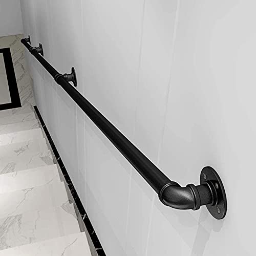 Corrimano per Scale Nero Interne Esterni Antiscivolo Corrimano in Ferro per Corridoio,Passaggio Sicurezza Ringhiera Passamano, Supporto a Parete,Per Anziani,Bambini (50CM)